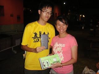 jackson and aisuan ended up as the last two participants in the gift exchange so they gt no choice but to exchange with each other.. hehe.. jackson gave an aroma therapy set and aisuan gave an organiser.
